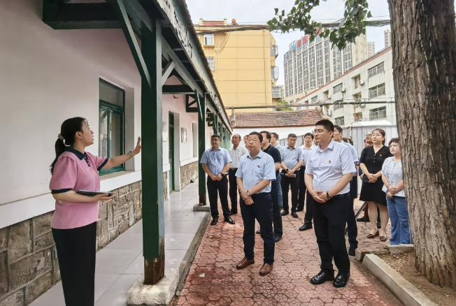 不忘历史,才能更好面向未来。今年是中国共产党成立 104 周年,同时也 是中国人民抗日战争暨世界反法西斯战争胜利 80 周年,济南长运公司党委安 排部署开展丰富多彩活动庆祝并纪念这些神圣时刻。7 月 1 日建党节,公司董 事长秦道勇、党委书记、总经理苏永光亲自带队,组织部分党员干部徒步到位 于临近的济南传媒学校院内的济南“新华院”旧址参观研学,活动主题是:弘 扬伟大抗战精神,再攀企业发展高峰。
